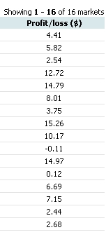 Session 1 (Sat 06/07/2013): Trading Profit Today +111.41 (16 races traded)