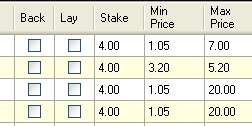 How can I back my rated runners between a specific price range for each runner without being infront of my PC to do so.