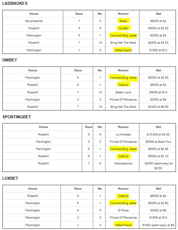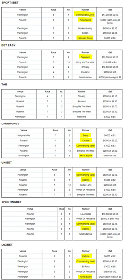 That's amazing, sounds like the holy grail of arbing. Good to know that TAB haven't limited you just for profiling like an arber (high number of bets). Years ago a corporate shut me down after losing 8k, just because I was doing a few hundred bets a day. RP, that image is illegible. Did TAB come out on top? |