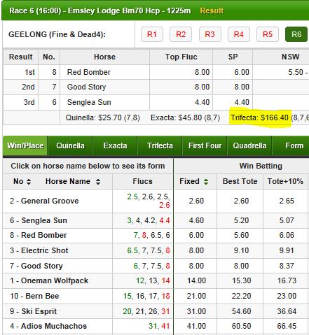 It was a weird day. Every morning one of my routines is to look at every race from yesterday and look at the "spread" of fluctuations for every horse. By 'spread', I mean the space between Open fluc and final Fixed price. Students of my methods know, that there is a lot of information revealed in the DNA of fluctuations. Yesterday was unusual in that the spreads across the board were very tight both horizontally (Open to Fixed) and vertically (Open prices of 1st 5 or 6 favourites). Not sure why it occurs, but my guess is that the bookies are unsure on the winning prospects of the first half dozen horses and are keeping the prices tight in all directions, hence why there wasn't too many Arb opportunities. What do you do on days like that? If I was a Backer, I'd be looking at the exotics, boxing those clusters for a trifecta. As a Layer, Laying the 2nd group of tailenders. From the screenshot below, this was a pretty common scenario yesterday. |